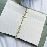 Elevate your A5 organiser with our versatile Agenda Cover in sage green. Tailor your own personal planner with various inserts, catering to productivity, wellness, or lifestyle needs.