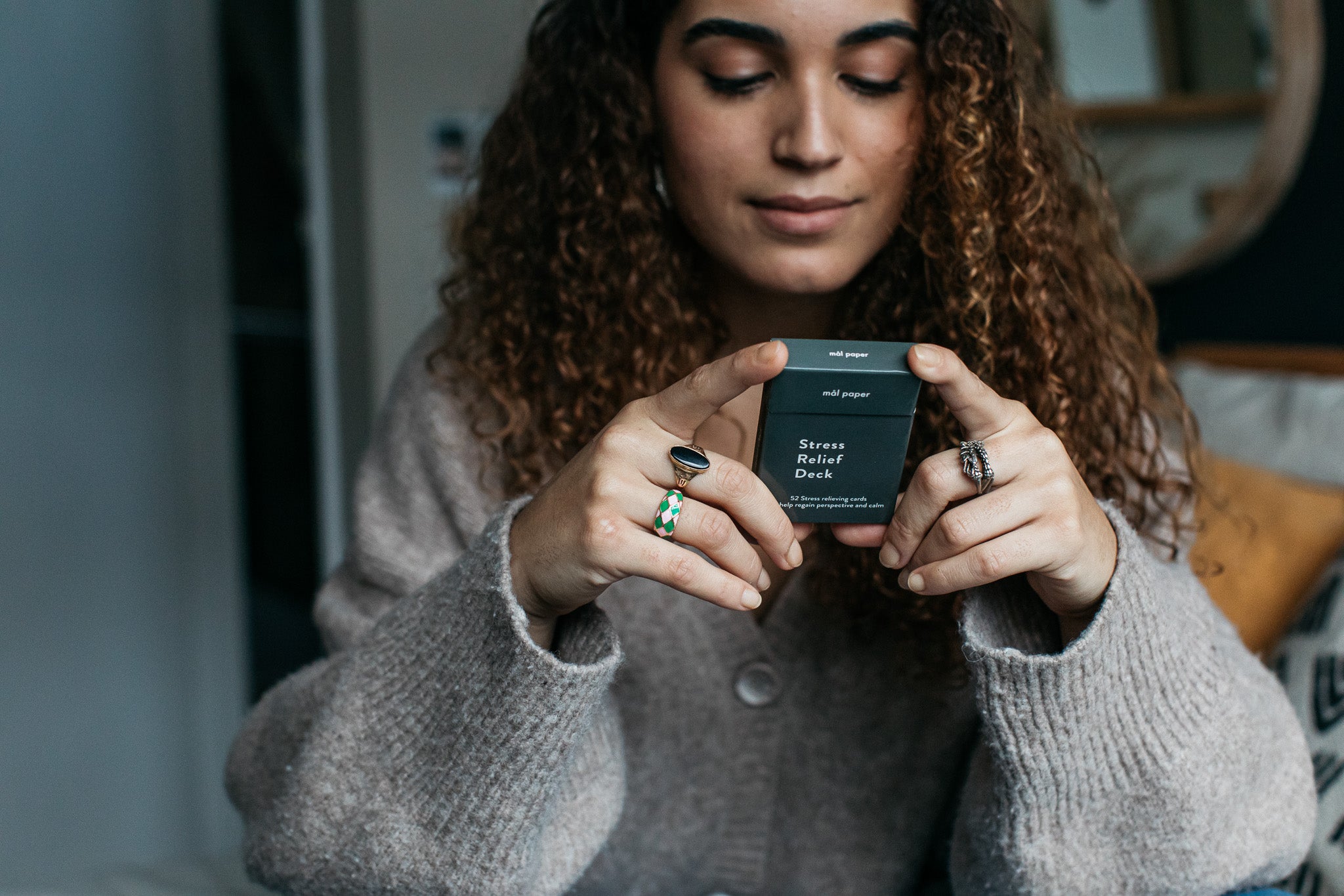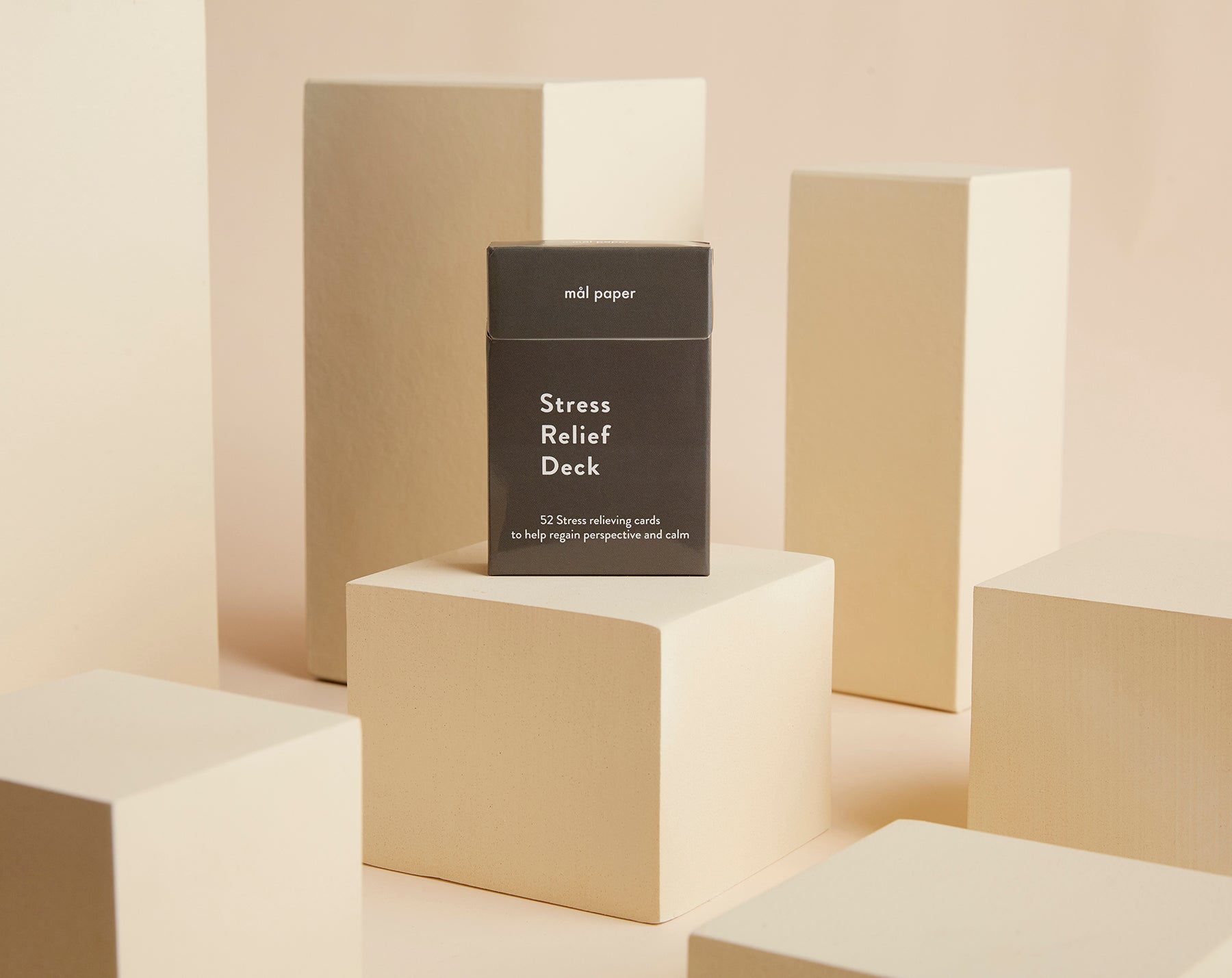 A deck of stress relief cards to help regain a sense of calm and clarity.
